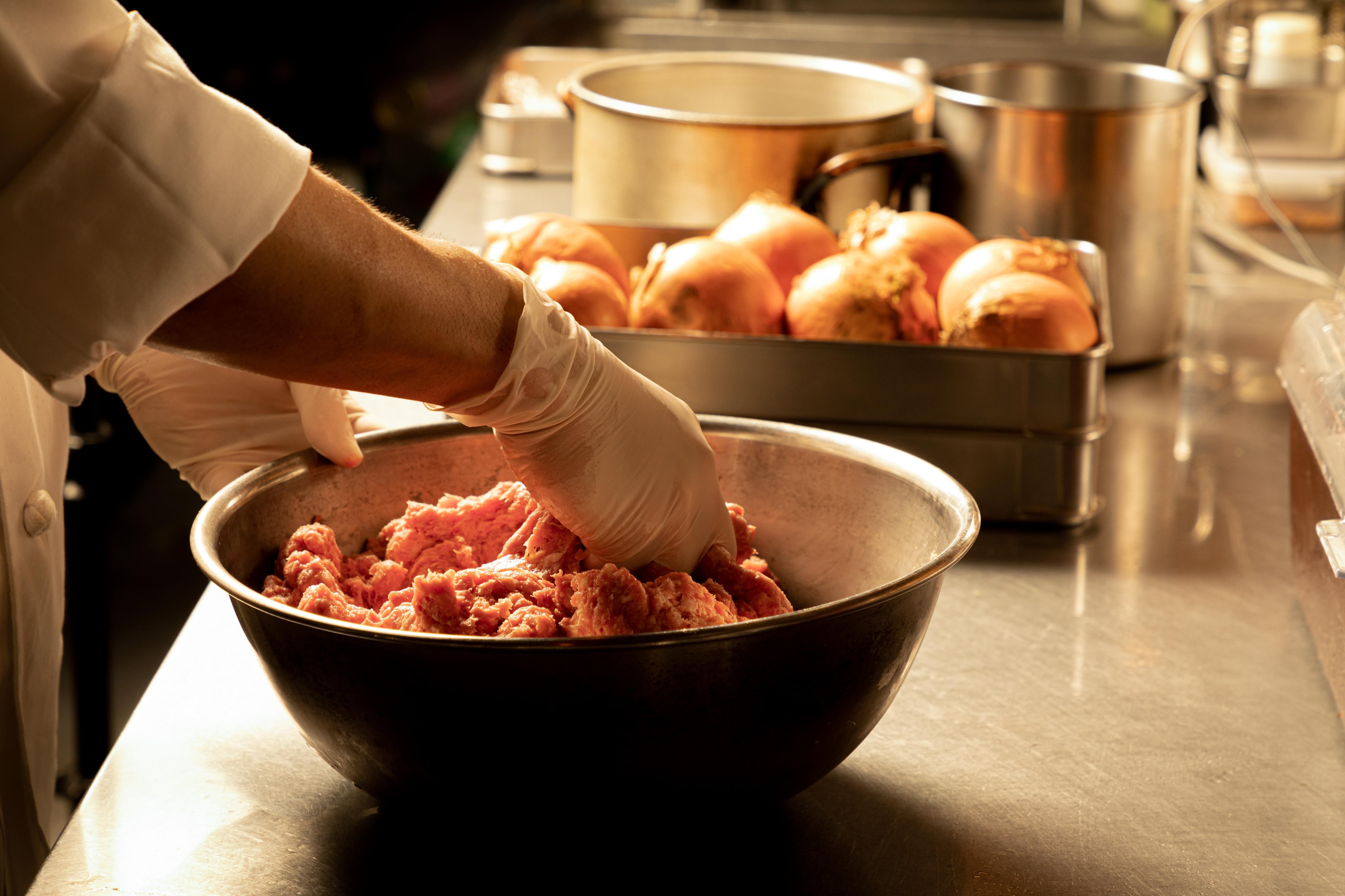 生産地がわかる肉を使っていると、牛肉に何かの不安が生じた際には、自分たちが使っているお肉が安心して食べられるものかどうかをしっかりと調べることができます。挽肉は鮮度と生産者との頼関係が大切です。