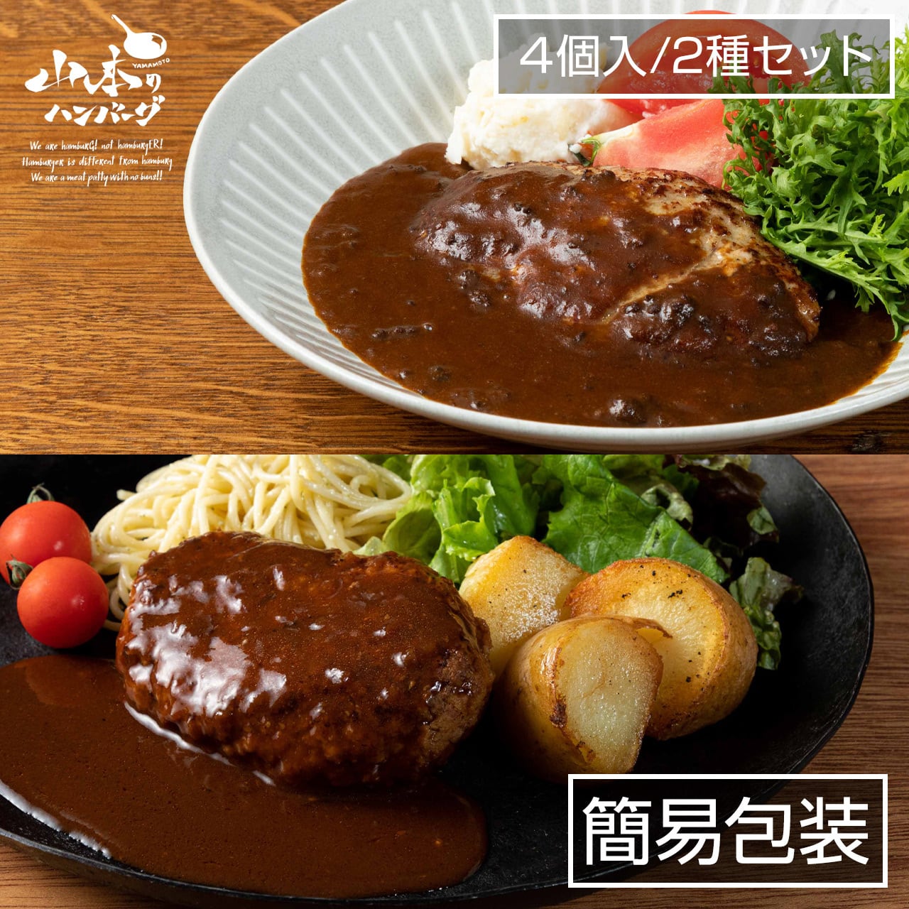 【簡易包装】ハンバーグ詰め合わせ 2種 4個セット(挽肉黒カレー 2個・特製デミグラス 2個)