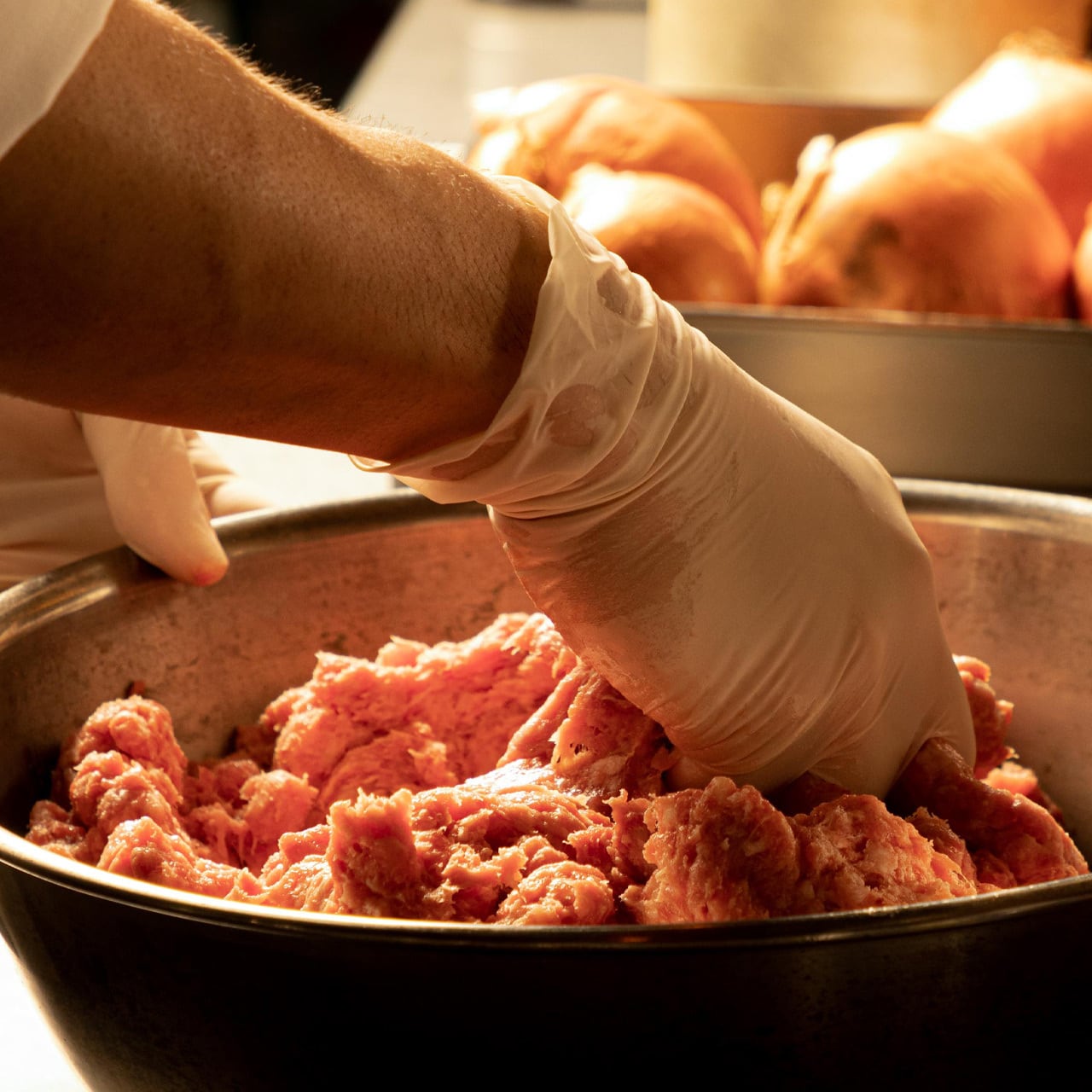挽肉は新しいものほど良いです。ミンチにした瞬間からドリップ(ピンク色の肉汁)が出てしまう前に使用したい。フードプロセッサーがあるなら、塊肉をカットしてから細かく挽肉にすることもおすすめです。挽肉の粗さの加減も好みに合わせられますし!牛と豚は一般的な7:3くらいで良いでしょう。お好みです。