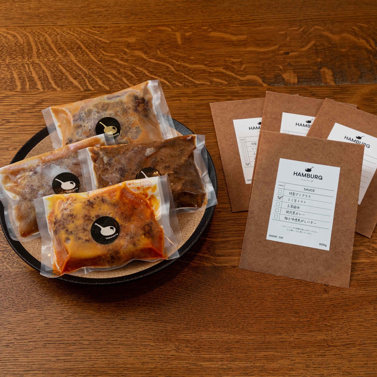 【クーポン対象・簡易包装】ハンバーグ詰め合わせ 5種 6個セット(特製デミグラス 2個・こく旨トマト 1個・玉ねぎ醤油 1個・挽肉黒カレー 1個・柚子味噌焦がしバター 1個)