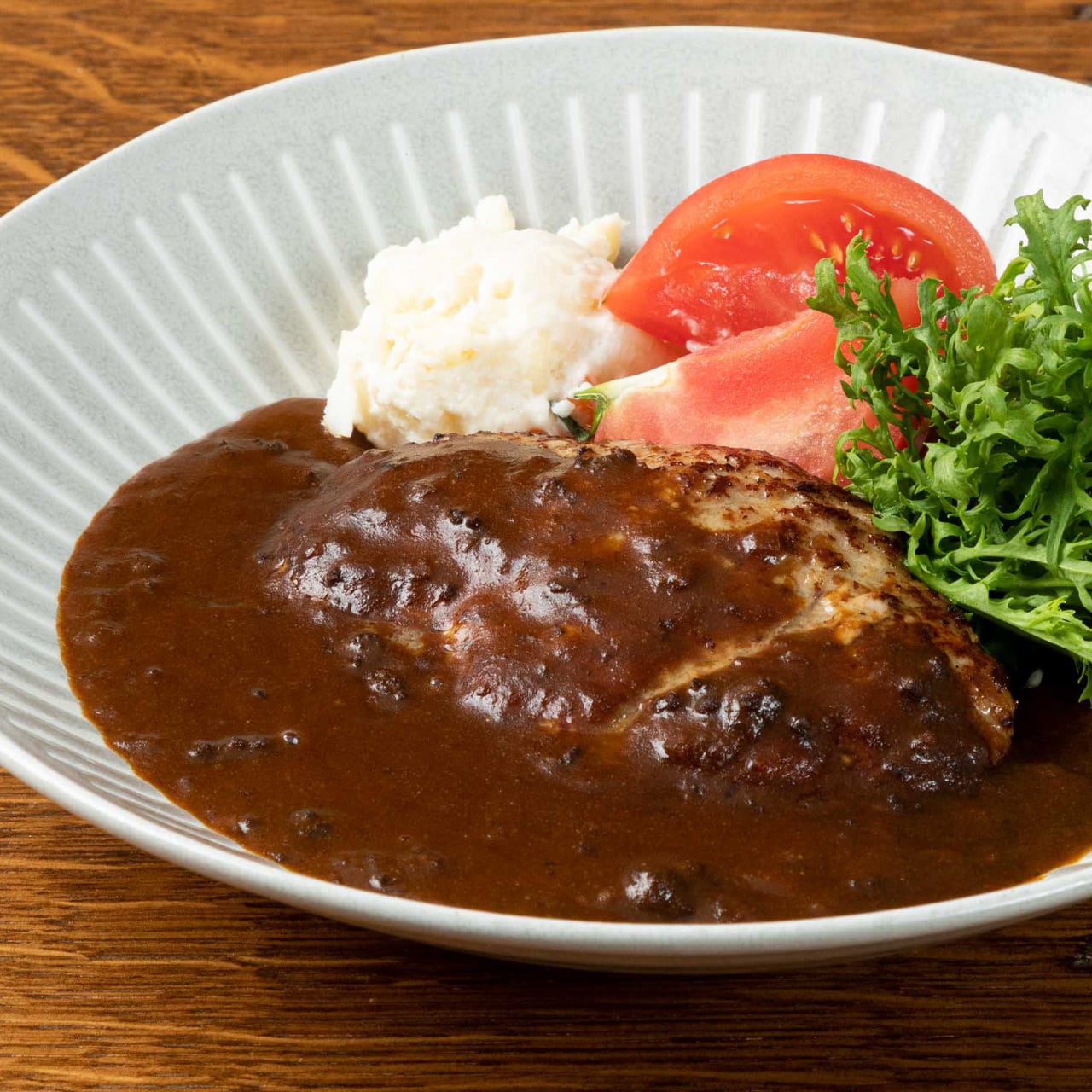 国産牛すじや香味野菜のローストをコトコト煮込んだ山本のハンバーグ特製デミグラスソース。その特製デミグラスソースに八丁味噌を組み合わせた炊きたてのご飯にぴったりなソースとなっています。
